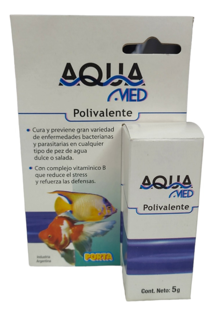 medicamento de amplio espectro para tratar enfermedades causadas por bacterias (gram positivas y gram negativas) y parásitos internos y externos como hongos y protozoarios. AquaMed Polivalente es una asociación de dos agentes antimicrobianos, un antiparasitario y un complejo vitaminico que se sinergizan logrando un altisimo porcentaje de cura en un tiempo muy corto.