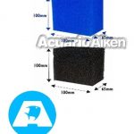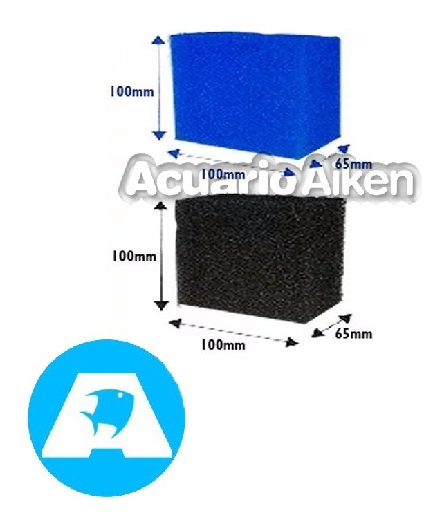 El paquete contiene dos esponjas, una de porosidad fina (30 ppi, color azul) y otra de porosidad gruesa (10 ppi, color negro) para la filtración biológica y/o mecánica para acuarios de agua dulce o marina y terrarios.